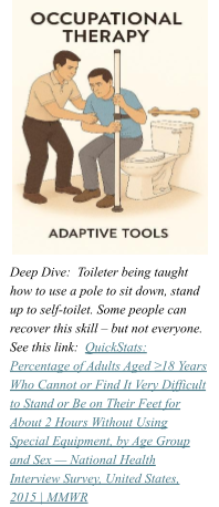 Some people have managed toileting independently for years—until pain, fatigue, spasticity, or changing strength alters what’s possible. What once worked no longer feels safe. The challenge isn’t learning how to toilet; it’s adapting when the body changes faster than the environment does.